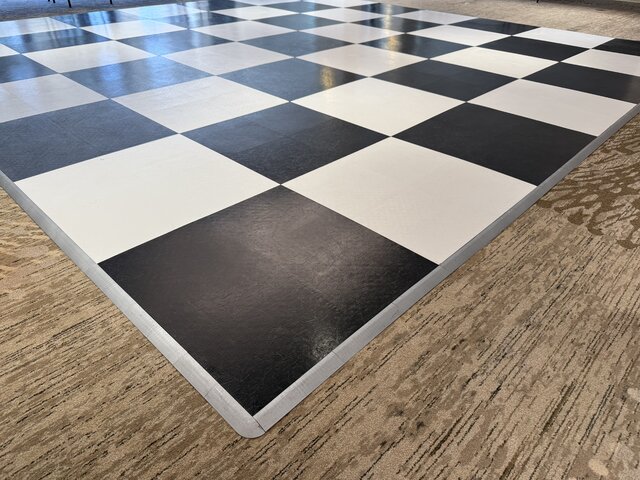Our Sleek White Dance Floor comes in 3'x 3' Panels and can be combined with Black and Oak to make all types of designs!